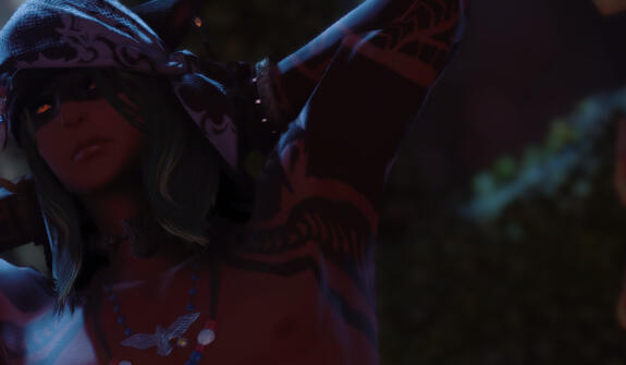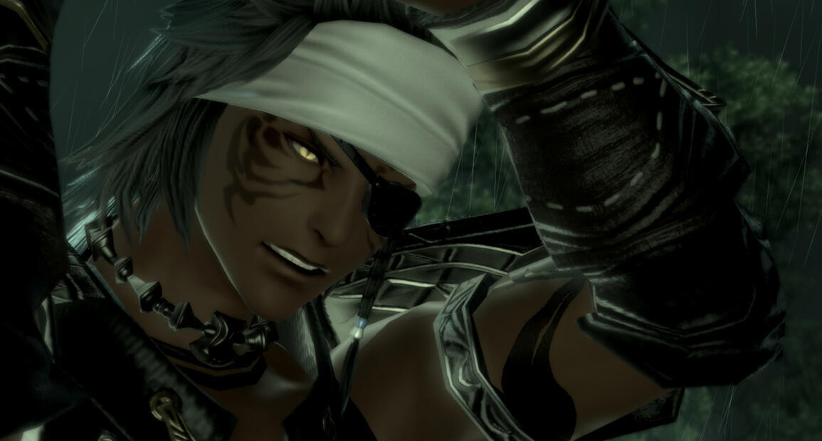 Extroverted Miqo’te gifted in combat and arts. Rounded ears, sharpened teeth, and tattoos along his skin. Jovial, but equally keen, cunning, and unhesitating.